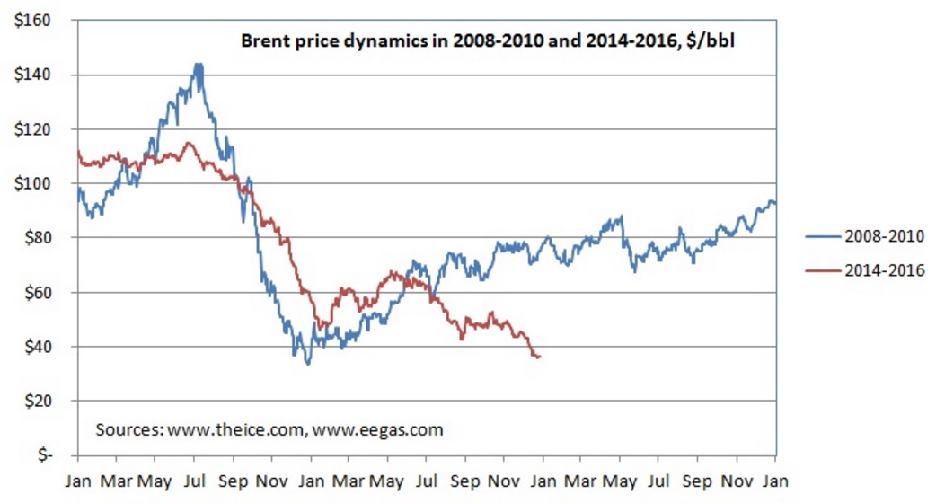 Для нашей страны и топливно-энергетического комплекса 2015 год стал годом больших испытаний. Еще в начале 2015 года представлялось, что дальнейшая динамика цен нефти после обвального падения второй половины 2014 года будет чем-то напоминать поведение в кризисном 2008 году, когда цены после падения быстро восстановили свои значения. Но в текущем году оптимистичному развитию событий помешало сразу несколько обстоятельств.