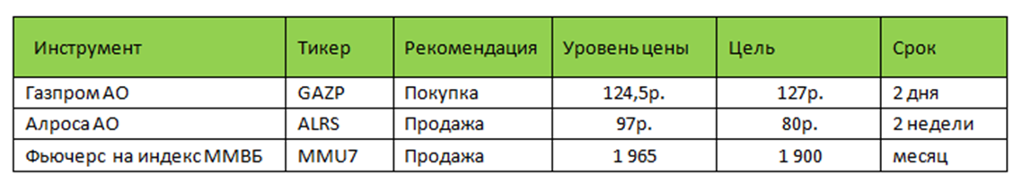 Индекс ММВБ достиг  1950 пунктов, для продолжения роста нужны новые драйверы которых не видно. На этой неделе заканчивается дивидендный сезон, Газпром имеет шансы подрасти до вторника. Далее нужно будет смотреть отчетности компаний за полугодие для оценки перспектив рынка во второй половине года, разве что дивидендные гэпы в этом году закрываются на редкость быстро и могут рынку немного помочь. Скорее всего, на котировки до конца лета будут влиять отдельные корпоративные события, наподобие новостей по Яндексу, а динамика индексов будет боковой или нисходящей. При портфельном инвестировании можно рассматривать продажу фьючерсов на индексы как хеджирующую позицию к портфелю акций.