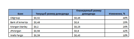 Среди крупных банков, которым в четверг разрешили увеличить выплаты акционерам, были и четыре крупнейших банка США – JPMorgan Chase & Co., Bank of America Corp., Citigroup Inc. и Wells Fargo & Co.