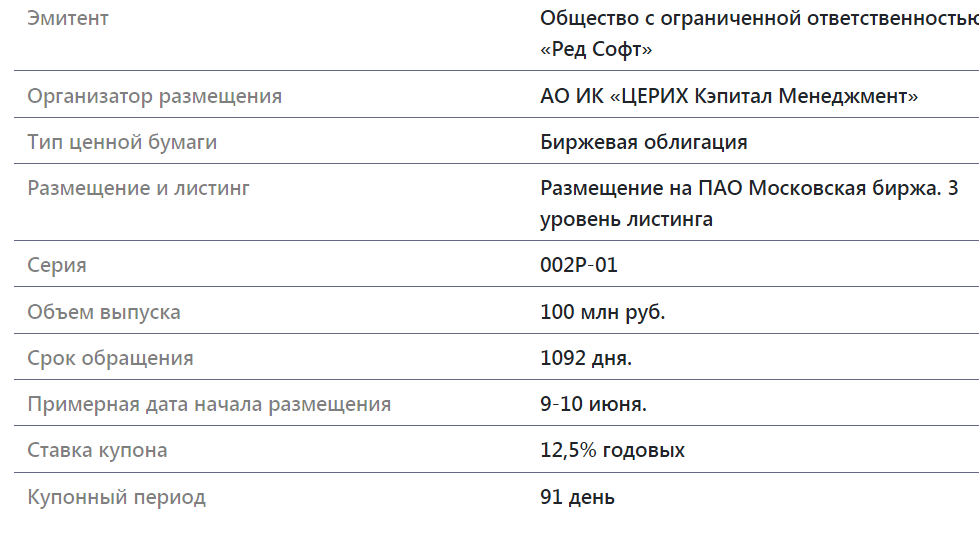 Одной из перспективных компаний на рынке ВДО сегодня является «РЕД СОФТ» - производитель программного обеспечения. «РЕД СОФТ» динамично развивающаяся компания , за последние пять лет увеличила выручку почти в три раза – до 289,1 млн. руб. Чистая прибыль компании за пять лет выросла в 23 раза – до 75,6 млн. Надежностью компании также является работа с госорганами.  Клиентами компании являются: Федеральная служба по надзору в сфере транспорта, Федеральное агентства связи, Федеральное агентство воздушного транспорта, ФБУ ИТЦ Федеральной антимонопольной службы, ФГБУ ИАЦ Судебного департамента, ФСПП. Сегодня программные продукты «РЕД СОФТ» представлены в 29 регионах страны из 87 и компании есть куда расти.  «РЕД СОФТ» уже разместила два выпуска облигаций общим объемом 200 млн. руб. Первый выпуск недавно был успешно погашен. 18 июня «РЕД СОФТ» начала размещение третьего выпуска облигаций, по привлекательной ставке. Привлеченные средства пойдут на развитие бизнеса. Стратегия компании 2025: