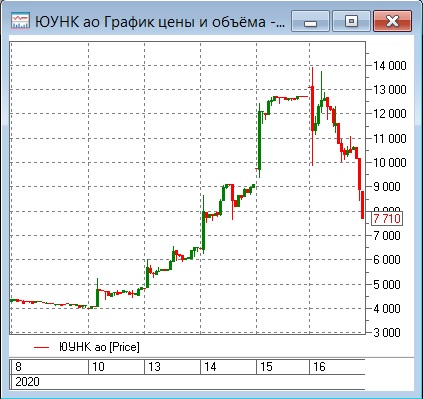 У нас нет информации о причинах столь бурного роста цен. Наиболее вероятной причиной для такой неликвидной бумаги может быть просто банальный разогрев цен для того, чтобы сбросить залежавшиеся в портфеле неликвидные активы. Сильный подскок цен также мог быть связаны и с предполагаемым изменением структуры собственности. Например, если имеющий затруднение с долгами Мечел ведет переговоры о продаже части своего пакета стратегическому инвестору. Можно также предполагать, что подобный сильный рост интереса к акциям компании мог быть связан также с началом работы простаивавшего ранее предприятия. Когда основной производитель никеля – компания Норильский никель находится в трудной ситуации, связанной с авариями на комбинате, игроки попытались найти для себя альтернативу вложений и их выбор пал на ПАО "Комбинат Южуралникель". А после начала разогрева игроки без информации могли подключиться к ажиотажному спросу, в надежде просто спекулятивно заработать на сильном движении цены. В четверг на торгах день для акций закончился феерическим падением, когда за день цена акций уменьшилась почти вдвое.