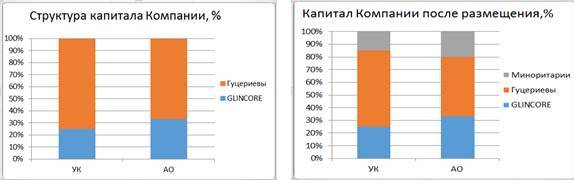 На текущий момент владельцами компании является семья Гуцериевых и крупная швейцарская трейдинговая компания GLINCORE - один из крупнейших в мире поставщиков сырьевых товаров. Компании GLINCORE и ее дочкам принадлежит 25% уставного капитала в виде обыкновенных акций (Доля GLINCORE в голосующих акциях составляет 33%). По итогам IPO члены семьи Гуцериевых стали владеть 60% УК (47% обыкновенных акций) компании.