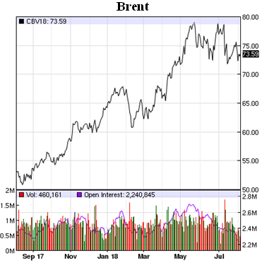 Понятно, что активные усилия США по ограничению поставок нефти из Ирана будут подталкивать цены нефти к подрастанию. Но на другой чаше весов – рост добычи нефти в США, который на прошлой неделе сделал небольшую паузу, а также динамика добычи нефти странами ОПЕК+. По предварительным оценкам, страны-участницы соглашения в июле увеличили добычу более чем на 0,2 миллиона баррелей в день. Более точные цифры станут известны на этой неделе, но они не будут меньше, поскольку одна Россия в июле нарастила добычу на 148 тб/д, да и страны ОПЕК, по предварительным оценкам, добавили около 70 тб/д. Так что ценам нефти будет над чем подумать при выборе направления дальнейшего движения. Чисто технически снижение цен нефти, которое наблюдалось в мае, а затем в июле, может продолжиться в августе.