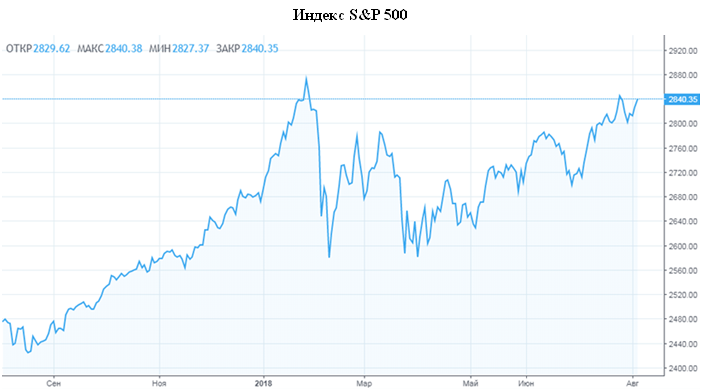 Конец рабочей недели американские индексы закончили в «плюсе»: Dow Jones по результатам сессии 3 августа прибавил 0,54%, поднявшись до 25462,58 пункта, за неделю он повысился на 0,1%. Индекс Standard & Poor's 500 вырос в пятницу на 0,46%, до отметки 2840,35 пункта, а за неделю прибавил 0,8%. Индекс Nasdaq Composite поднялся в пятницу на 0,12%, до 7812,01 пункта, а за неделю вырос на 1%.