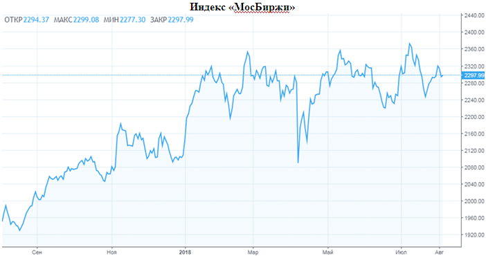 Если же перевести взгляд на индекс МосБиржи, то бросается в глаза то, что «быкам» в июле не удалось закрепиться выше февральского максимума, что вызвало откат рынка вниз. Такая же ситуация была и в мае. Июльский откат был связан с коррекцией на рынке нефти и отсутствием видимых результатов встречи Трампа и Путина. Никаких видимых договоренностей достигнуто не было. Сейчас много говорят о том, что президенты договорились об уходе войск Ирана из Сирии, но к фондовому рынку это не имеет отношения. После окончания периода дивидендных отсечек стимулы для роста рынка были потеряны. Большинство индексов развивающихся стран в последние дни снизилось из-за сильного доллара, и это тоже негативный момент для нашего рынка.
