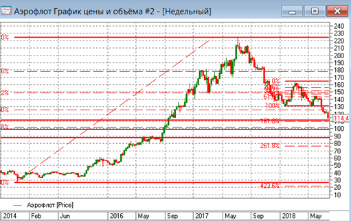 Среди главных разочарований недели отметим акции «Аэрофлота». К сожалению, вышедшая во второй половине недели негативная отчетность (за 2к18 по РСБУ) похоронила надежды на быстрый рост. Напомним, что исторический максимум у этой акции составляет 220 рублей. Отчетность по международным стандартам должна быть опубликована в районе 30 августа.